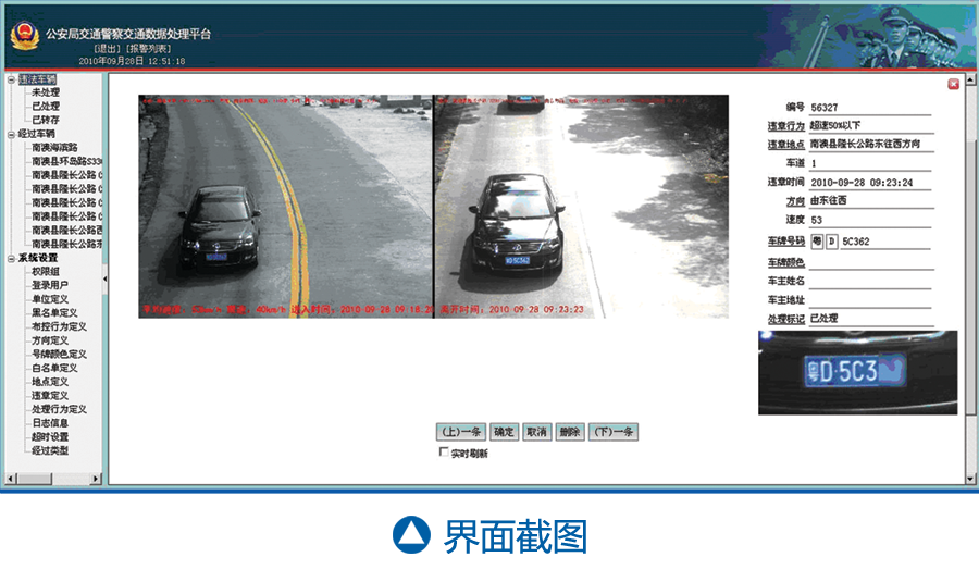 DA-366公路車輛智能監(jiān)測(區(qū)間測速)自動記錄系統(tǒng)由二套及以上的前端系統(tǒng)構(gòu)建區(qū)間測速點,準(zhǔn)確記錄通過車輛的時間及圖片,通過自動識別軟件提取車牌等相關(guān)信息,并將這些信息匯總到后臺服務(wù)器的數(shù)據(jù)庫處理。前端系統(tǒng)由車輛通過檢測單元、車輛通過監(jiān)控程序(儀表)、抓拍設(shè)備、主控程序、地感線圈組、閃光燈組件等部分組成。各個前端處理系統(tǒng)和后端系統(tǒng)以TCP/IP的方式組成局域網(wǎng),構(gòu)成完整的DA-356A區(qū)間測速自動記錄系統(tǒng)。前端采集到的車輛違法圖片被分類存儲在斷面服務(wù)器,圖片通過聯(lián)網(wǎng)將圖片傳送至后端系統(tǒng),完成車牌識別、入庫處理后,到達(dá)數(shù)據(jù)、控制中心,傳輸網(wǎng)絡(luò)可以是光纖、ADSL或其它有無線網(wǎng)絡(luò),并具備斷點續(xù)傳功能。